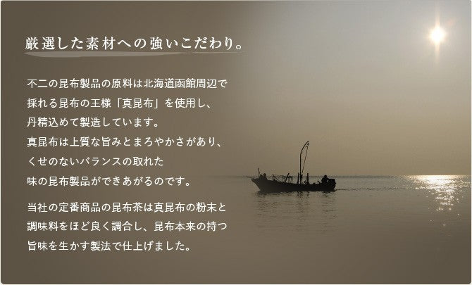 This exceptional tea is meticulously sourced by 不二食品株式会社 (Fuji Foods), a distinguished, award-winning kombu artisan house rooted in Osaka's centuries-old tradition of seaweed craftsmanship.