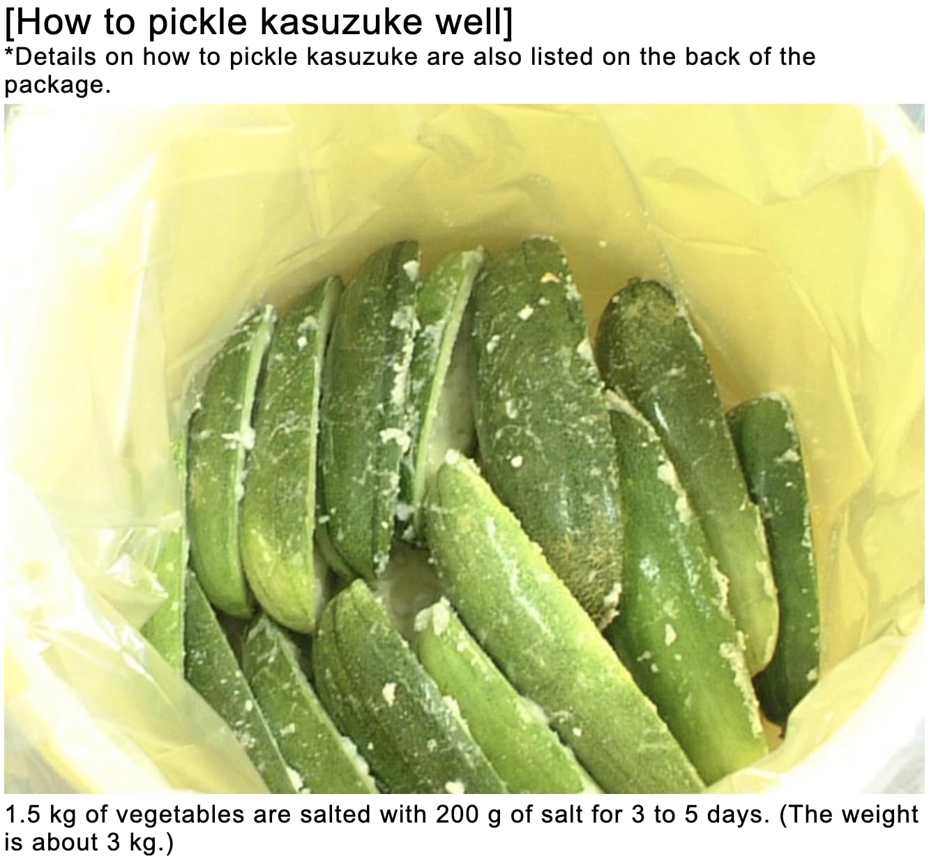 *Details on how to pickle kasuzuke are also listed on the back of the package in Japanese.